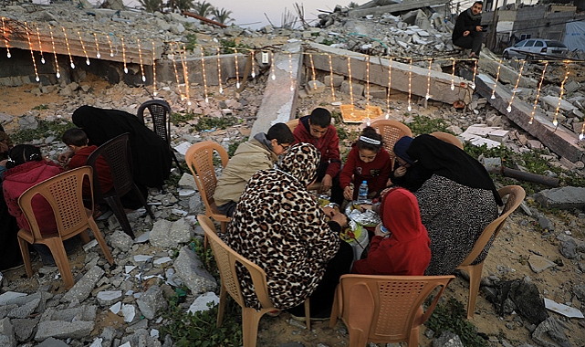 Ramazan ayının ilk gününde katil İsrail'in Gazze Şeridi'nin çeşitli bölgelerindeki saldırıları devam ederken, Refah'taki Filistinliler, saldırılar sırasında yıkılan evlerinin enkazı üstünde ilk iftarlarını yaptı.
